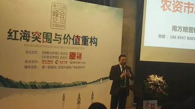 南方略營銷咨詢公司劉祖軻報告題目《農(nóng)資市場與紅海突圍之路》,他提出紅海突圍應該朝著提升消費者的幸福指數(shù);降低種植戶痛苦指數(shù),從賺種植戶的錢到幫種植戶賺錢;提升經(jīng)銷商創(chuàng)富指數(shù),為客戶提升價值三個方向發(fā)展。