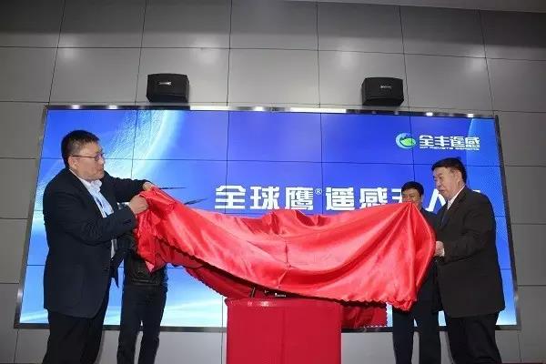 由陳學(xué)庚院士、蘭玉彬教授,王志國董事長、黃文江研究員共同為全球鷹遙感無人機(jī)揭幕。